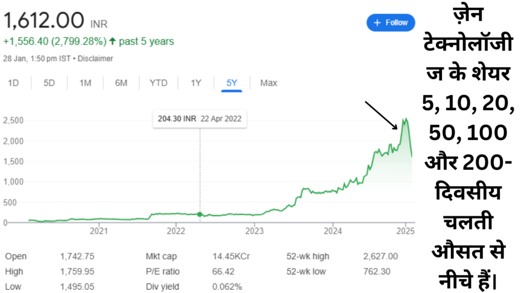 पिछले सत्र में जेन टेक्नोलॉजीज के शेयर बीएसई पर 5.69% गिरकर 1743.35 रुपये पर आ गए।